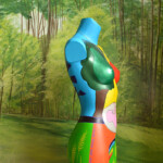 Demeter, de (oer)moeder van alles dat groeit en bloeit, is mijn ‘snelste’ Godin. Ik heb haar binnen 1 maand ontworpen en geschilderd. De andere Godinnen heb ik van ontwerp tot ‘voldragen’ minimaal 9 maanden over gedaan. Wellicht omdat ik nu goed weet hoe ik paspoppen moet schilderen of omdat de zorgzame godin Demeter een makkelijk deel is in mijzelf.
