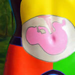 “Zonder tranen heeft onze ziel geen regenboog…” staat op haar rechter zij. Oftewel, verlies, pijn en tegenslag kan een regenboog verbinding geven door het ontstaan van mededogen voor een ander.